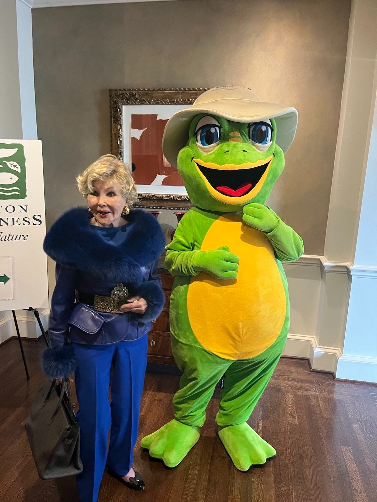Yesterday, my friend tenderly enfolded me into a $10,000 frog mascot suit in the supply closet of a country club that admitted its first black member in 1997. As Hoppi, the mascot of the nonprofit my friend works for, I was under strict orders not to speak to avoid ruining “the magic of Hoppi.” So, I danced around, waved, shook hands, and posed for pictures with rich and powerful Texans, including the woman who, in her own words, “did not make Al-Qaeda,” while sweat ran down my face in the froggy darkness inside Hoppi’s head. After 20 minutes, I felt my psyche begin to meld with Hoppi’s. I feel very sincerely that I was just a few minutes away from a demipermanent personality shift when my friend pulled me back into the supply closet to become human once again.